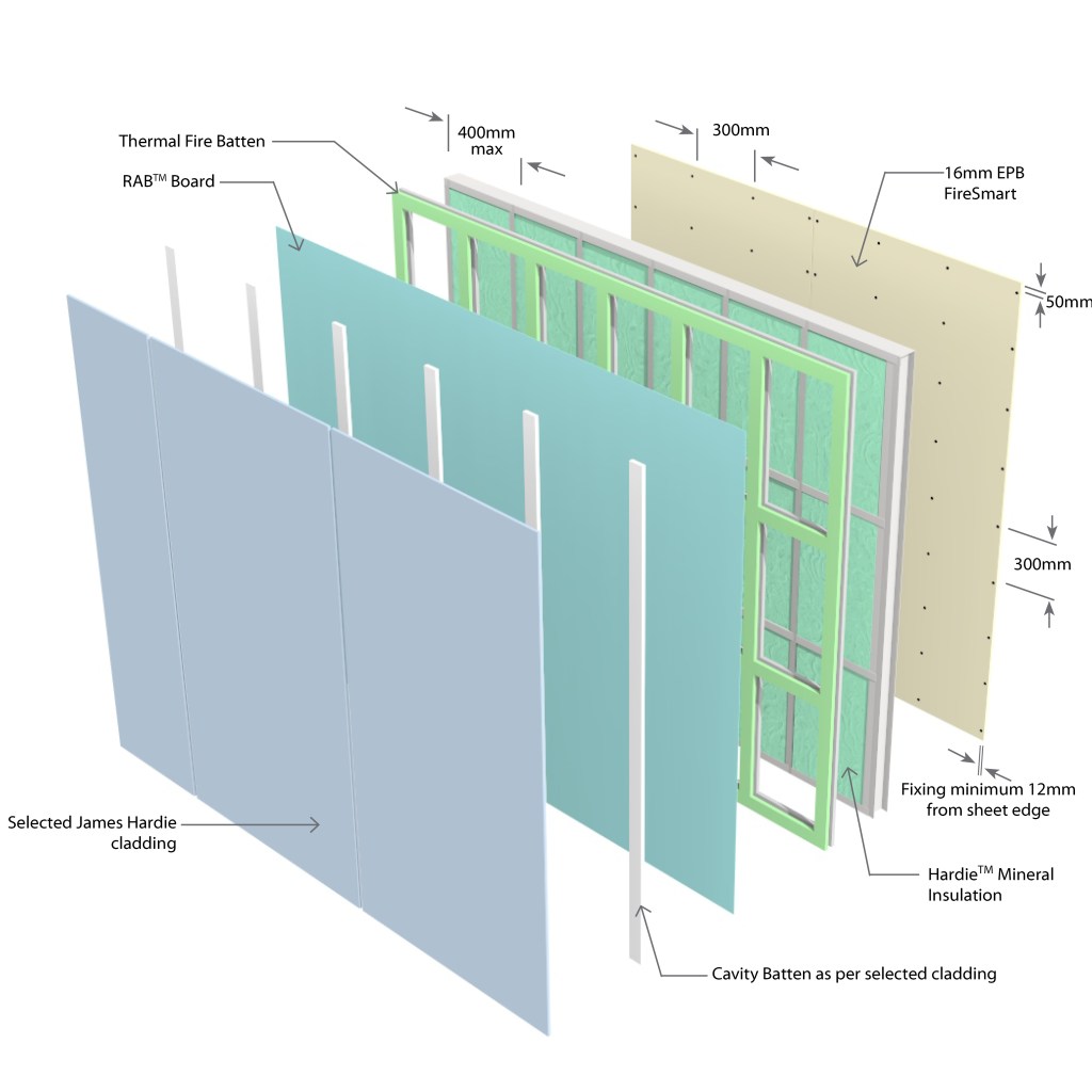 2 x 13mm EPB FireSmart on Internal side James Hardie RAB™ Board with Selected James Hardie Fibre Cement cladding to External side