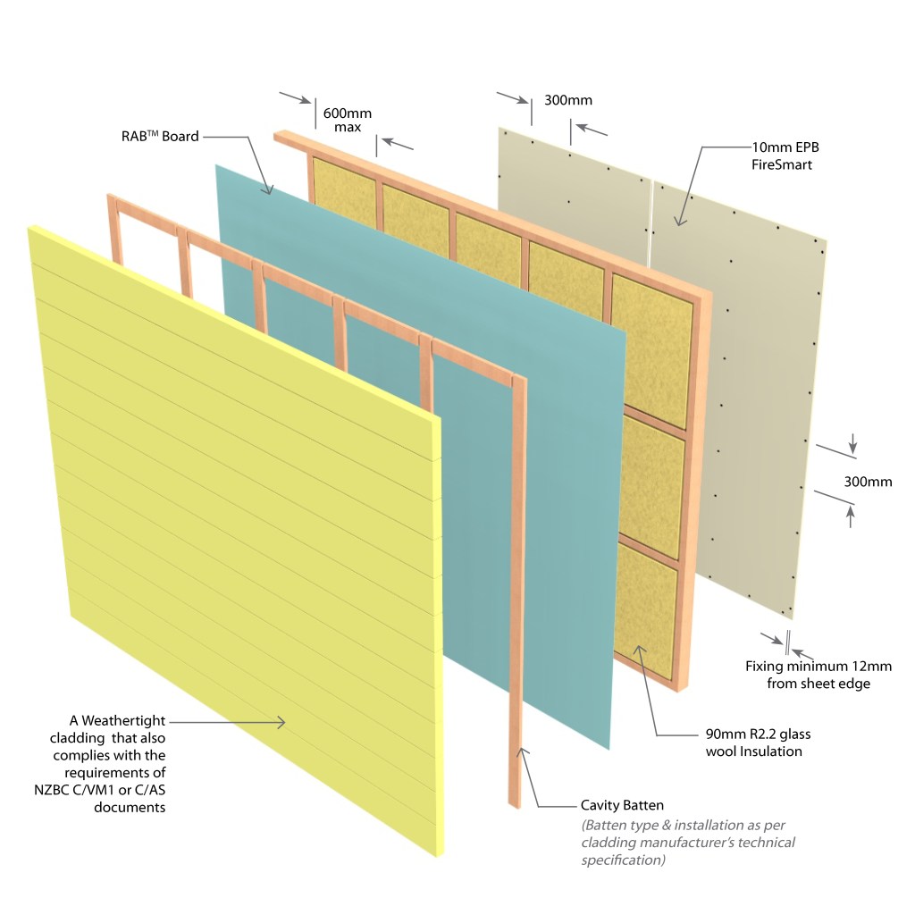 1 x 13mm EPB FireSmart on Internal side James Hardie RAB™ Board with a Weathertight Cladding to External side