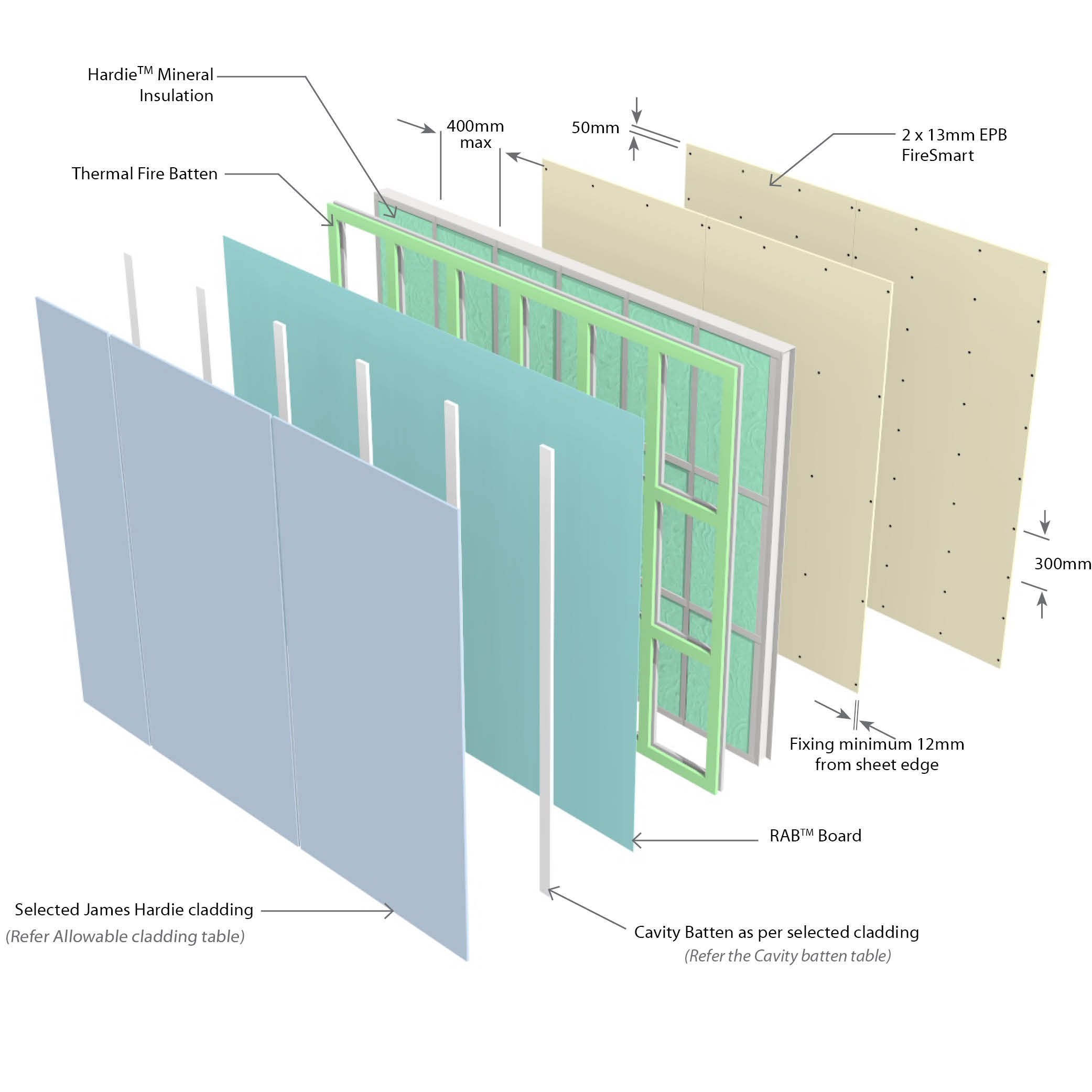 James Hardie RAB™ Board with Selected James Hardie Fibre Cement cladding to External side